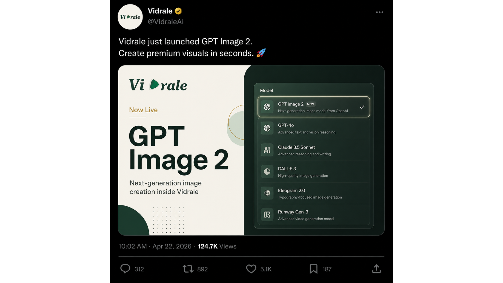Use GPT Image 2 inside Vidrale