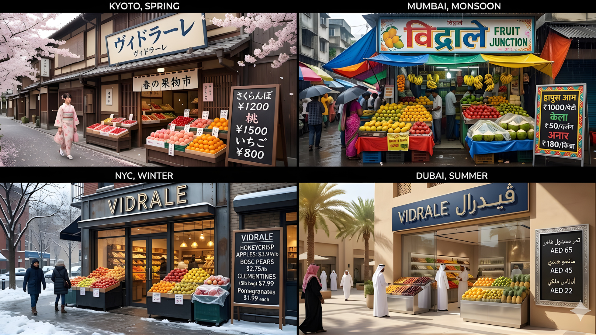 Then list each city with its language and context. The model can "re-skin" the same scene per market without breaking visual consistency.