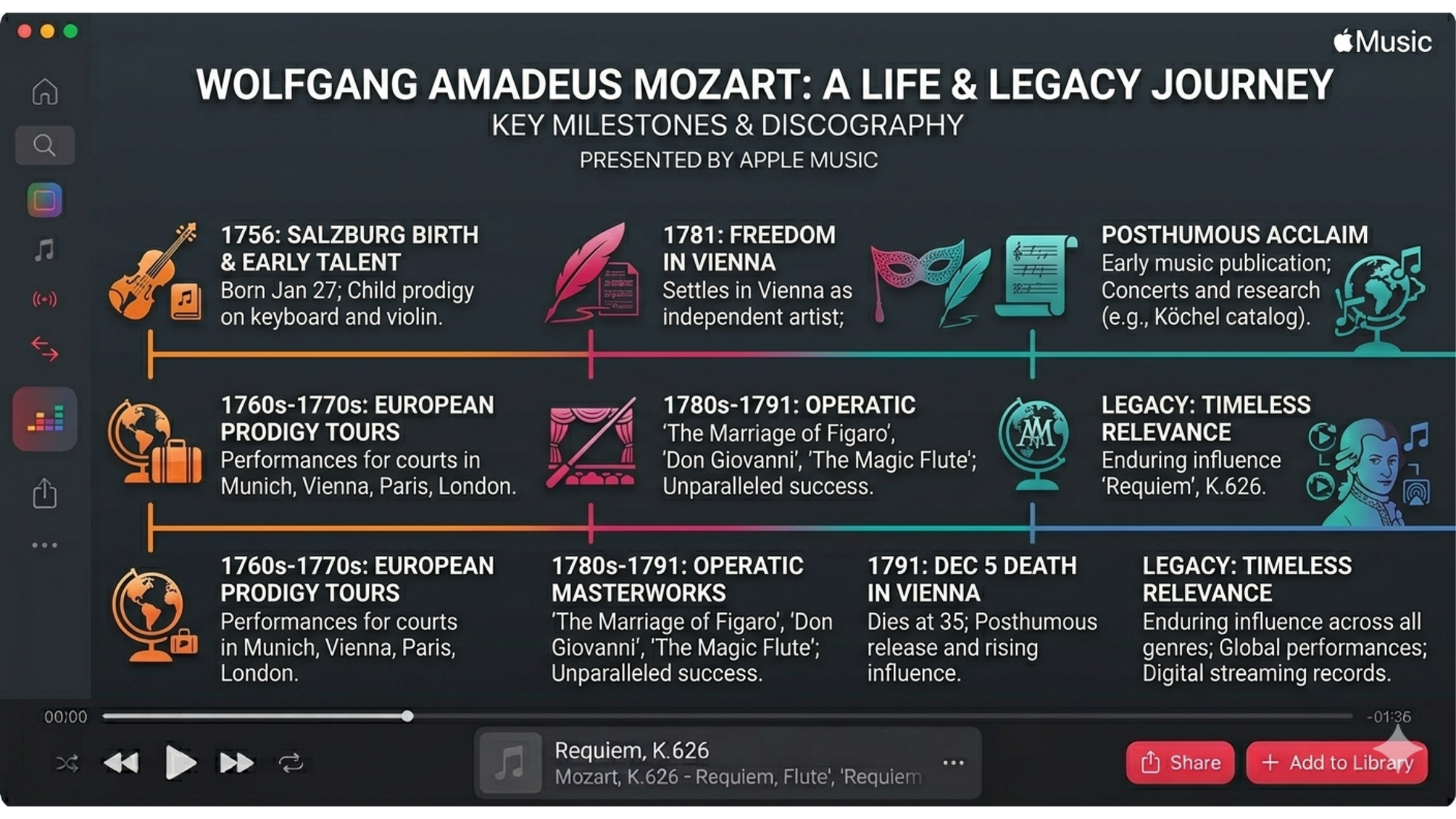 When you want to embed real, dated data, be precise. State the subject clearly, ask for a progression "from oldest to newest," and mention full names and dates. This tells the model you expect a chronological infographic anchored in reality, not a generic visual.